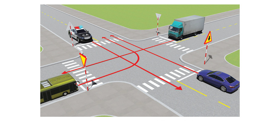Các xe đi theo hướng mũi tên, xe nào vi phạm quy tắc giao thông?