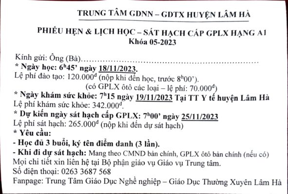 Lịch học và thi giấy phép lái xe tháng 11 năm 2023